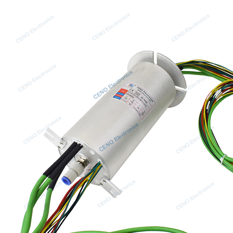 Une bague collectrice est un dispositif électromécanique qui permet la transmission de l'alimentation et des signaux électriques d'une structure fixe à une structure rotative. Une bague collectrice peut être utilisée dans tout système électromécanique qui nécessite une rotation tout en transmettant de l'énergie ou des signaux. Elle peut améliorer les performances mécaniques, simplifier le fonctionnement du système et éliminer les fils sujets aux dommages qui pendent des joints mobiles.
